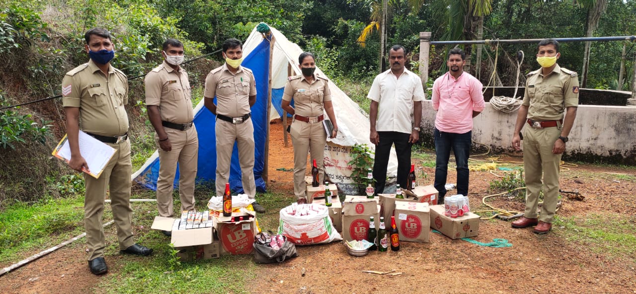 ಬೆಳ್ತಂಗಡಿ: ಖಚಿತ ಮಾಹಿತಿಯ ಮೇರೆಗೆ ಜೂನ್ 1ರ ಬೆಳಿಗ್ಗೆ ಗರ್ಡಾಡಿ ಗ್ರಾಮದ ಕಾಣೇಲು ನಿವಾಸಿ ಭೋಜ ಎಂಬವರ ಮನೆಯಲ್ಲಿನ ಅಕ್ರಮ ಮದ್ಯ ಮಾರಾಟದ ಅಡ್ಡೆಗೆ ತನ್ನ ಸಿಬ್ಬಂದಿಗಳೊಂದಿಗೆ ದಾಳಿ ನಡೆಸಿದ ಪುಂಜಾಲಕಟ್ಟೆ ಪೊಲೀಸ್ ಠಾಣಾ ಸಬ್‌ಇನ್ಸ್‌ಪೆಕ್ಟರ್ ಜೆ. ಸೌಮ್ಯಾ; ಮಾರಾಟದ ಉದ್ಧೇಶಕ್ಕಾಗಿ ಅಕ್ರಮವಾಗಿ ದಾಸ್ತಾನಿರಿಸಿದ ರೂಪಾಯಿ 42,356/- ಅಂದಾಜು ಮೌಲ್ಯದ 58.68ಲೀಟರ್ ಮದ್ಯ ಹಾಗೂ ರೂಪಾಯಿ 14,125/- ಅಂದಾಜು ಮೌಲ್ಯದ 82.53ಲೀಟರ್ ಬಿಯರ್‌ನ್ನು ಸ್ವಾದೀನ ಪಡಿಸಿಕೊಂಡಿದ್ದಾರೆ. ದಾಳಿಯ ವೇಳೆ ಆರೋಪಿಗಳು ಪರಾರಿಯಾಗಿದ್ದಾರೆ ಎನ್ನಲಾಗಿದ್ದು, ಬೆಳ್ತಂಗಡಿ ಪೊಲೀಸ್ ಠಾಣೆಯಲ್ಲಿ ಪ್ರಕರಣ ದಾಖಲಾಗಿದೆ.