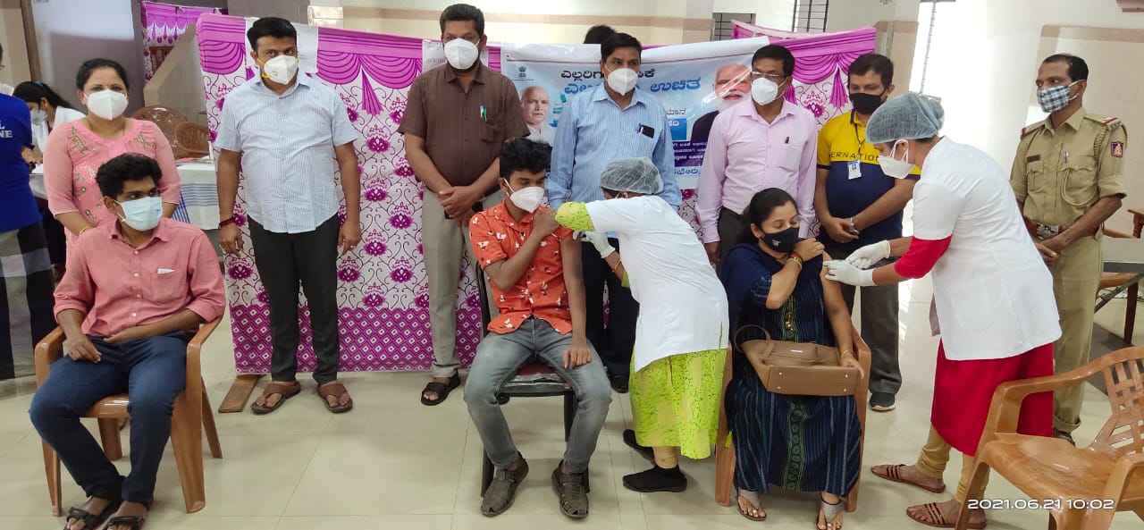 ಬೆಳ್ತಂಗಡಿ: ದೇಶದ ಪ್ರಧಾನಿ ನರೇಂದ್ರ ಮೋದಿ ಅವರ ಮಹತ್ವಾಕಾಂಕ್ಷಿ ಯೋಜನೆಯಾದ ‘ಎಲ್ಲರಿಗೂ ಲಸಿಕೆ, ಎಲ್ಲರಿಗೂ ಉಚಿತ’ ವಿಶ್ವದ ಅತಿ ದೊಡ್ಡ ಉಚಿತ ಲಸಿಕಾ ಅಭಿಯಾನ ಜೂನ್ 21ರ ವಿಶ್ವ ಯೋಗದಿನದಂದು ದೇಶದಾದ್ಯಂತ ನಡೆಯುತ್ತಿದ್ದು, ಬೆಳ್ತಂಗಡಿ ತಾಲೂಕು ಆರೋಗ್ಯ ಕೇಂದ್ರದ ವತಿಯಿಂದ ಶ್ರೀ ಧರ್ಮಸ್ಥಳ ಮಂಜುನಾಥೇಶ್ವರ ಕಲಾ ಭವನದಲ್ಲಿ ನಡೆದ ಕೋವಿಡ್ ಲಸಿಕಾ ಅಭಿಯಾನಕ್ಕೆ ಬೆಳ್ತಂಗಡಿಯ ಶಾಸಕ ಹರೀಶ್ ಪೂಂಜ ಚಾಲನೆ ನೀಡಿದರು.ಬೆಳ್ತಂಗಡಿ ತಾಲೂಕು ವೈದ್ಯಾಧಿಕಾರಿ ಡಾl ಕಲಾಮಧು, ಬೆಳ್ತಂಗಡಿ ಸರಕಾರಿ ಆಸ್ಪತ್ರೆಯ ಆಡಳಿತಾಧಿಕಾರಿ ಡಾl ವಿದ್ಯಾವತಿ, ಕ್ಷೇತ್ರ ಶಿಕ್ಷಣ ಸಂಯೋಜಕ ಸುಭಾಷ್ ಜಾದವ್, ತಾಲೂಕು ಪ್ರೌಢ ಶಾಲಾ ಸಹಶಿಕ್ಷಕರ ಸಂಘದ ಅಧ್ಯಕ್ಷ ರಮೇಶ್ ಮಯ್ಯ, ಕಾರ್ಯದರ್ಶಿ ರಿಯಾಜ್ ಅಹಮ್ಮದ್ ಮತ್ತಿತರರು ಉಪಸ್ಥಿತರಿದ್ದರು.