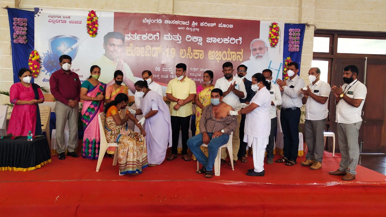 ಬೆಳ್ತಂಗಡಿ: ಮಡಂತ್ಯಾರು ಗ್ರಾಮ ಪಂಚಾಯಿತ್ ವತಿಯಿಂದ ಬೆಳ್ತಂಗಡಿ ಶಾಸಕ ಹರೀಶ್ ಪೂಂಜ ನೇತೃತ್ವದಲ್ಲಿ ಮಡಂತ್ಯಾರು ವರ್ತಕರ ಸಂಘ ಮತ್ತು ಅಟೋ ರಿಕ್ಷಾ ಸಂಘದ ಸದಸ್ಯರಿಗೆ ಕೋವಿಡ್-19 ಲಸಿಕಾ ಅಭಿಯಾನ ಜುಲೈ 6ರಂದು ಮಡಂತ್ಯಾರು ಸೇಕ್ರೆಡ್ ಹಾರ್ಟ್ ಚರ್ಚ್ನ ಸಭಾಭವನದಲ್ಲಿ ನಡೆಯಿತು.ಬೆಳ್ತಂಗಡಿ ಶಾಸಕ ಹರೀಶ್ ಪೂಂಜ ಅವರು ಕೋವಿಡ್-19 ಲಸಿಕಾ ಅಭಿಯಾನಕ್ಕೆ ಚಾಲನೆ ನೀಡಿ, ತಾಲೂಕಿನಲ್ಲಿ ಈಗಾಗಲೇ ಶೇಕಡಾ 65ರಷ್ಟು ಮಂದಿಗೆ ಲಸಿಕೆ ನೀಡಲಾಗಿದೆ. ತಾಲೂಕಿನ ಜನರ ಆರೋಗ್ಯದ ದೃಷ್ಟಿಯಿಂದ ಆರೋಗ್ಯ ಇಲಾಖೆಯ ಸಹಕಾರದೊಂದಿಗೆ ಲಸಿಕಾ ಅಭಿಯಾನವನ್ನು ಯಶಸ್ವಿಯಾಗಿ ಮಾಡಲಾಗುತ್ತಿದೆ. ಮುಂದಿನ ಆಗಸ್ಟ್ , ಸೆಪ್ಟೆಂಬರ್ ತಿಂಗಳೊಳಗೆ ಎಲ್ಲರಿಗೂ ಲಸಿಕೆ ಲಭ್ಯವಾಗಲಿದೆ. ಕೋವಿಡ್ ನಿಯಂತ್ರಣಕ್ಕಾಗಿ ತಾಲೂಕಿನ ಜನರ ಸುರಕ್ಷತೆ ದೃಷ್ಟಿಯಿಂದ ಅಗತ್ಯ ಕ್ರಮ ಕೈಗೊಂಡ ಕಾರಣ ಸೋಂಕು ಹರಡದಂತೆ ಕಡಿವಾಣ ಆಗಿದೆ. ಪ್ರತಿ ಗ್ರಾಮ ಪಂಚಾಯತ್ಗಳಲ್ಲಿ ಟಾಸ್ಕ್ಫೋರ್ಸ್ ಸಭೆ ನಡೆಸಿ, ಸೋಂಕಿತರ ಆರೈಕೆ ಮಾಡಲಾಗಿತ್ತು. ಅದೇ ರೀತಿ ತಾಲೂಕಿನಲ್ಲಿ ಶ್ರೀ ಕ್ಷೇತ್ರ ಧರ್ಮಸ್ಥಳದ ಧರ್ಮಾಧಿಕಾರಿ ಡಾ. ಡಿ. ವೀರೇಂದ್ರ ಹೆಗ್ಗಡೆಯವರ ಮಾರ್ಗದರ್ಶನದಲ್ಲಿ ಕೋವಿಡ್ ಕೇರ್ ಸೆಂಟರ್ ಮಾಡಿ ಸೋಂಕಿತರಿಗೆ ಚಿಕಿತ್ಸೆ ನೀಡಿದ್ದು, ರಾಜ್ಯದಲ್ಲೇ ಮಾದರಿ ಕೋವಿಡ್ ಸೆಂಟರ್ ಎಂಬ ಹೆಗ್ಗಳಿಕೆಗೆ ಪಾತ್ರವಾಗಿದೆ ಎಂದರು.ಕೊರೋನಾ ವಾರಿಯರ್ಸ್ ಆಗಿರುವ ಆಶಾ ಕಾರ್ಯಕರ್ತೆ ಯರಿಗೆ ಸರಿಯಾದ ಮಾಹಿತಿ ಒದಗಿಸುವ ನಿಟ್ಟಿನಲ್ಲಿ ಮುಂದಿನ ವಾರದಲ್ಲಿ 247 ಆಶಾ ಕಾರ್ಯಕರ್ತೆಯರಿಗೆ ಮಂದಿಗೆ ಮೊಬೈಲ್ ನೀಡಲಾಗುವುದು. ತಾಲೂಕಿಗೆ ಏಳು ಮಂದಿ ವೈದ್ಯರ ನೇಮಕ ಆಗಿದೆ. ಬೆಳ್ತಂಗಡಿ ಸಾರ್ವಜನಿಕ ಆಸ್ಪತ್ರೆಯಲ್ಲಿ ಪ್ರಸೂತಿ ತಜ್ಞರ ಖಾಲಿ ಹುದ್ದೆ ಇದ್ದು, ಇದೀಗ ಅದೇ ಹುದ್ದೆಗೆ ಡಾl ರಶ್ಮಿ ನೇಮಕ ಆಗಿದ್ದಾರೆ. ಮೂರನೆ ಅಲೆಯ ಕುರಿತು ಜಾಗ್ರತೆ ಅಗತ್ಯ ಎಂದರು.ಮಡಂತ್ಯಾರು ಸೇಕ್ರೆಡ್ ಹಾರ್ಟ್ ಚರ್ಚ್ ಪ್ರಧಾನ ಧರ್ಮಗುರುಗಳಾದ ವಂದನೀಯ ಬೇಸಿಲ್ ವಾಸ್ ಮಾತನಾಡಿ, ದೇವರು ಕೊಟ್ಟ ಆರೋಗ್ಯವನ್ನು ಕಾಪಾಡಿಕೊಂಡು ಬಂದಿದ್ದೇವೆ. ಅದನ್ನು ಉಳಿಸಿಕೊಳ್ಳುವಲ್ಲಿ ಎಲ್ಲರೂ ಜಾಗ್ರತೆ ವಹಿಸಬೇಕು. ಈಗಾಗಲೇ ಕೋವಿಡ್ ಎರಡು ಅಲೆಗಳನ್ನು ಜಯಿಸಿದ್ದೇವೆ. ನಮ್ಮ ನಮ್ಮ ಜಾಗ್ರತೆಯಲ್ಲಿದ್ದರೆ ಮೂರನೇ ಅಲೆಯನ್ನೂ ಕೂಡಾ ಗೆಲ್ಲಬಹುದು ಎಂದರಲ್ಲದೇ, ತಾಲೂಕಿನಲ್ಲಿ ಜನರ ಆರೋಗ್ಯ ದೃಷ್ಟಿಯಿಂದ ಶಾಸಕ ಹರೀಶ್ ಪೂಂಜ ಅವರು ನಿಸ್ವಾರ್ಥವಾಗಿ ಸೇವೆ ಮಾಡುತ್ತಿದ್ದಾರೆ. ಪ್ರತಿಯೊಬ್ಬರಿಗೂ ಲಸಿಕೆ ಸಿಗುವಂತೆ ಅಭಿಯಾನವನ್ನು ಕೈಕೊಂಡು, ಎಲ್ಲರಿಗೂ ಮಾದರಿಯಾಗಿದ್ದಾರೆ ಎಂದರು.ಮಡಂತ್ಯಾರು ವರ್ತಕರ ಸಂಘ, ಜೆಸೀಐ ಮಡಂತ್ಯಾರು, ರೋಟರಿ ಕ್ಲಬ್ ಮಡಂತ್ಯಾರು ಇನ್ನಿತರ ಸ್ಥಳೀಯ ಸಂಘ ಸಂಸ್ಥೆಗಳ ಸಹಯೋಗದೊಂದಿಗೆ 500 ಡೋಸ್ ಲಸಿಕೆ ನೀಡಲಾಯಿತು. ಮಡಂತ್ಯಾರು ವರ್ತಕರ ಸಂಘದ ಅಧ್ಯಕ್ಷ ಜಯಂತ ಶೆಟ್ಟಿ, ಮಡಂತ್ಯಾರು ಗ್ರಾಮ ಪಂಚಾಯತ್ ಅಧ್ಯಕ್ಷೆ ಶಶಿಪ್ರಭಾ, ಉಪಾಧ್ಯಕ್ಷೆ ಸಂಗೀತಾ ಶೆಟ್ಟಿ, ಮಾಲಾಡಿ ಗ್ರಾಮ ಪಂಚಾಯತ್ ಉಪಾಧ್ಯಕ್ಷ ದಿನೇಶ್ ಕರ್ಕೇರ, ಬೆಳ್ತಂಗಡಿ ತಾಲೂಕು ಪಂಚಾಯಿತ್ನ ಮಾಜಿ ಸದಸ್ಯರಾದ ಜೋಯೆಲ್ ಗೋಡ್ಫ್ರಿ ಮೆಂಡೋನ್ಸಾ ಮತ್ತು ವಸಂತಿ ಲಕ್ಷ್ಮಣ, ಬೆಳ್ತಂಗಡಿ ತಾಲೂಕು ವೈದಾಧಿಕಾರಿ ಡಾl ಕಲಾಮಧು, ಬೆಳ್ತಂಗಡಿ ಸರಕಾರಿ ಆಸ್ಪತ್ರೆಯ ಆಡಳಿತ ವೈದಾಧಿಕಾರಿ ಡಾl ವಿದ್ಯಾವತಿ, ಮಡಂತ್ಯಾರು ಗ್ರಾಮ ಪಂಚಾಯತ್ ಅಭಿವೃದ್ಧಿ 