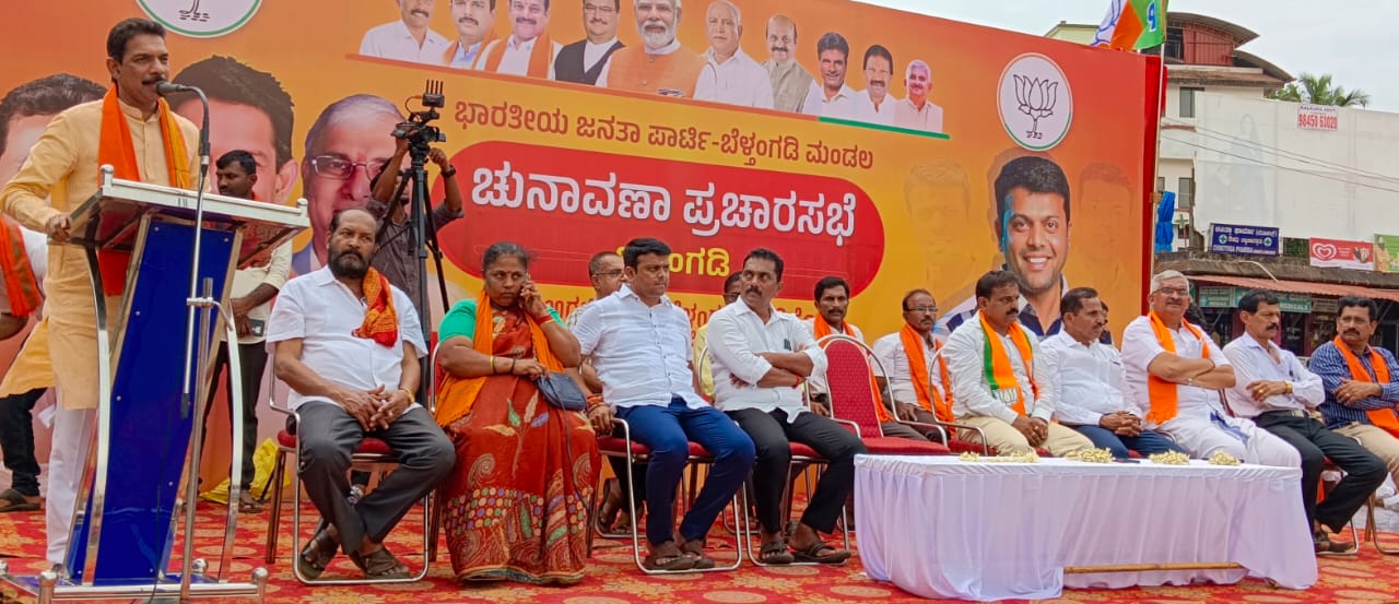 ಬೆಳ್ತಂಗಡಿ: ರಾಜ್ಯದಲ್ಲಿ ಎಲ್ಲಾ ಕ್ಷೇತ್ರಗಳಲ್ಲಿ ಬಿಜೆಪಿ ಅಲೆಯಿದ್ದು, ರಾಜ್ಯದಲ್ಲಿ ಬಿಜೆಪಿ 120ಕ್ಕೂ ಮಿಕ್ಕಿ ವಿಧಾನ ಸಭಾ ಕ್ಷೇತ್ರಗಳಲ್ಲಿ ಗೆಲುವು ಸಾಧಿಸಲಿದೆ. ದಕ್ಷಿಣ ಕನ್ನಡ ಜಿಲ್ಲೆಯ 8 ಕ್ಷೇತ್ರಗಳಲ್ಲೂ ಜಯಭೇರಿ ಭಾರಿಸಲಿದೆ. ಬೆಳ್ತಂಗಡಿ ವಿಧಾನ ಸಭಾ ಕ್ಷೇತ್ರದಲ್ಲಿ ಅಭ್ಯರ್ಥಿ ಹರೀಶ್ ಪೂಂಜ 50 ಸಾವಿರ ಮತಗಳ ಅಂತರದಿಂದ ಗೆಲುವು ಸಾಧಿಸಲಿದ್ದಾರೆ ಎಂದು ಬಿಜೆಪಿ ರಾಜ್ಯಾಧ್ಯಕ್ಷ ಹಾಗೂ ಸಂಸದರಾದ ನಳಿನ್‌ಕುಮಾರ್ ಕಟೀಲ್ ಹೇಳಿದರು.ಅವರು ಮೇ 8ರಂದು ಸಂಜೆ ಬೆಳ್ತಂಗಡಿ ಬಸ್‌ನಿಲ್ದಾಣದ ಬಳಿ ಬಿಜೆಪಿ ಅಭ್ಯರ್ಥಿ ಹರೀಶ್ ಪೂಂಜರ ಪರ ನಡೆದ ಬೃಹತ್ ಪ್ರಚಾರ ಸಭೆಯನ್ನು ಉದ್ದೇಶಿಸಿ ಮಾತನಾಡುತ್ತಿದ್ದರು. ಕಾಂಗ್ರೆಸ್ ಸರಕಾರ 60 ವರ್ಷಗಳಲ್ಲಿ ಯಾವುದೇ ಸಾಧನೆ ಮಾಡಿಲ್ಲ. ಶಾಸಕ ಹರೀಶ್ ಪೂಂಜ ಐದು ವರ್ಷಗಳಲ್ಲಿ ರೂಪಾಯಿ. 3,500 ಕೋಟಿ ಅನುದಾನ ತಂದು ಅಭಿವೃದ್ಧಿ ಕಾರ್ಯ ಮಾಡಿದ್ದಾರೆ. ಆದರೆ ಈ ಹಿಂದೆ ಶಾಸಕರಾಗಿದ್ದ ಬಂಗೇರರು ಏನು ಮಾಡಿದ್ದಾರೆ ಎಂದು ದಾಖಲೆ ಸಹಿತ ತೋರಿಸಲಿ ಎಂದು ಸವಾಲು ಹಾಕಿದರು.ದೇಶದಲ್ಲಿ ನರೇಂದ್ರ ಮೋದಿ ಪ್ರಧಾನಿಯಾದ ಬಳಿಕ ಹೊಸ ಪರಿವರ್ತನೆಯಾಗಿದೆ. ಜಗತ್ತು ಇವತ್ತು ಭಾರತದ ಕಡೆ ನೋಡುತ್ತಿದೆ. ಜನಧನ್ ಯೋಜನೆ, ಕೊರೋನಾ ಅವಧಿಯಲ್ಲಿ ದೇಶದ ಜನರ ರಕ್ಷಣೆ ಸೇರಿದಂತೆ ಹಲವಾರು ಜನೋಪಯೋಗಿ ಕಾರ್ಯಕ್ರಮಗಳನ್ನು ಕೇಂದ್ರ ಸರಕಾರ ಮಾಡಿದೆ. ಮುಂದೆ ಒಂದು ವಿಧಾನಸಭಾ ಕ್ಷೇತ್ರದಲ್ಲಿ 10 ಸಾವಿರ ಮಂದಿಗೆ ಹಕ್ಕುಪತ್ರ ನೀಡಿ, 10ಸಾವಿರ ಮನೆಗಳನ್ನು ನಿರ್ಮಿಸುವ ಕಾರ್ಯ ಕೇಂದ್ರ ಸರಕಾರ ಮಾಡಲಿದೆ ಎಂದು ತಿಳಿಸಿದರು.ಬಿಜೆಪಿ ಅಭ್ಯರ್ಥಿ ಹಾಗೂ ಶಾಸಕ ಹರೀಶ್ ಪೂಂಜ ಅವರು ಮಾತನಾಡಿ, ಕಳೆದ ಐದು ವರ್ಷಗಳಲ್ಲಿ ಬೆಳ್ತಂಗಡಿ ತಾಲೂಕಿನ ಸಮಗ್ರ ಅಭಿವೃದ್ಧಿಗೆ ಹಗಲಿರುಳು ಶ್ರಮಿಸಿದ್ದೇನೆ. ನೆರೆ, ಕೊರೋನಾ ಸಂದರ್ಭದಲ್ಲಿ ಜನರ ಕಷ್ಟ-ನಷ್ಟಗಳಿಗೆ ಯಾವುದೇ ಜಾತಿ, ಮತ, ಧರ್ಮವನ್ನು ಪರಿಗಣಿಸದೆ ಸ್ಪಂದಿಸಿದ್ದೇನೆ. ನನ್ನ ಬದುಕು ಸಮಾಜಕ್ಕೆ ಅರ್ಪಿತ ಎಂಬ ರೀತಿಯಲ್ಲಿ ಹಲವಾರು ಕಷ್ಟ, ನೋವನ್ನು ಅನುಭವಿಸಿ, ಮತದಾರರು ನನ್ನನ್ನು ಶಾಸಕನಾಗಿ ಆಯ್ಕೆ ಮಾಡಿರುವುದಕ್ಕೆ ಕ್ಷೇತ್ರದ ಜನತೆಗಾಗಿ ಕೆಲಸ ಮಾಡಿದ್ದೇನೆ. ಮುಂದೆ ಶಾಸಕನಾಗಿ ಆಯ್ಕೆಯಾದರೆ ಬೆಳ್ತಂಗಡಿ ವಿಧಾನಸಭಾ ಕ್ಷೇತ್ರದಲ್ಲಿ ಮಣ್ಣಿನ ರಸ್ತೆ ಇಲ್ಲ ಎಂಬ ರೀತಿಯಲ್ಲಿ ರಸ್ತೆಗಳ ಅಭಿವೃದ್ಧಿ, ನೀರಾವರಿಗಾಗಿ 50 ಕಿಂಡಿ ಅಣೆಕಟ್ಟು, 12 ಕೋಟಿ ರೂಪಾಯಿ ವೆಚ್ಚದಲ್ಲಿ ಬೆಳ್ತಂಗಡಿಯಲ್ಲಿ ಬಸ್‌ನಿಲ್ದಾಣ ನಿರ್ಮಣ ಮಾಡಲಿದ್ದೇನೆ ಎಂದು ತಿಳಿಸಿದರು.ಬಿಜೆಪಿ ಜಿಲ್ಲಾ ಉಪಾಧ್ಯಕ್ಷ ಹರಿಕೃಷ್ಣ ಬಂಟ್ವಾಳ ಅವರು ಮಾತನಾಡಿ, ಚುನಾವಣೆ ಘೋಷಣೆಯಾದ ಬಳಿಕ ಕಾಂಗ್ರೆಸ್‌ನ ನಾಯಕರು ಕಟ್ಟಿದ ಸುಳ್ಳಿನ ಕೋಟೆಯನ್ನು ಮತದಾರರು ಬಿಜೆಪಿಗೆ ರಾಜ್ಯದಲ್ಲಿ ಬಹುಮತ ತರುವ ಮೂಲಕ ಪುಡಿಮಾಡಲಿದ್ದಾರೆ. ಬೆಳ್ತಂಗಡಿ ಕ್ಷೇತ್ರದಲ್ಲಿ ಹರೀಶ್ ಪೂಂಜ 75ಸಾವಿರ ಮತಗಳ ಅಂತರದಲ್ಲಿ ಗೆಲ್ಲಲು ಮತದಾರರು ಆಶೀರ್ವಾದ ಮಾಡಬೇಕು ಎಂದು ಕರೆ ನೀಡಿದರು.ವಿಧಾನ ಪರಿಷತ್ ಶಾಸಕ ಪ್ರತಾಪಸಿಂಹನಾಯಕ್ ಮಾತನಾಡಿ, ಬೆಳ್ತಂಗಡಿ ಶಾಸಕ ಹರೀಶ್ ಪೂಂಜ ಐದು ವರ್ಷಗಳಲ್ಲಿ ಮಾಡಿದ ಮತಗಳು ಮಾತನಾಡುತ್ತಿದ್ದು, ನಾವು ಕೆಲಸ ಮಾಡಿ, ಇದರ ಆಧಾರದಲ್ಲಿ ಮತಕೇಳಲು ಮತದಾರರ ಬಳಿಗೆ ಹೋಗುತ್ತಿದ್ದೇವೆ. ಬೆಳ್ತಂಗಡಿ ಕ್ಷೇತ್ರದಲ್ಲಿ ಬಿಜೆಪಿ ಗೆದ್ದೆಗೆಲ್ಲುತ್ತದೆ ರಾಜ್ಯದಲ್ಲಿ 115ರಿಂದ 130ಸ್ಥಾನ ಪಡೆಯುತ್ತದೆ ಎಂದು ಹೇಳಿ
