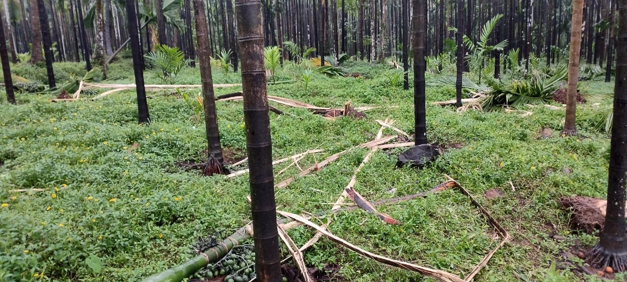 ಬೆಳ್ತಂಗಡಿ: ಚಾರ್ಮಾಡಿ ಗ್ರಾಮದ ಮಠದ ಮಜಲು ಎಂಬಲ್ಲಿ ಅನಂತರಾಮ ರಾವ್ ಎಂಬವರ ತೋಟಕ್ಕೆ ಅಕ್ಟೋಬರ್ 5ರ ಮುಂಜಾನೆ ನುಗ್ಗಿದ ಕಾಡಾನೆಗಳ ಹಿಂಡು 60 ಅಡಕೆ ಮರ ಹಾಗೂ ಒಂದು ತೆಂಗಿನ ಮರವನ್ನು ಮುರಿದುಹಾಕಿವೆ. ಹಿಂಡಿನಲ್ಲಿ ಸುಮಾರು 6 ಕಾಡಾನೆಗಳಿರುವ ಶಂಕೆ ವ್ಯಕ್ತವಾಗಿದ್ದು ತೋಟದಲ್ಲಿ ಮೂಡಿರುವ ಆನೆಗಳ ಹೆಜ್ಜೆಗಳು ಇದನ್ನು ದೃಢೀಕರಿಸುತ್ತಿವೆ.ಮಠದ ಮಜಲು ಪರಿಸರದಲ್ಲಿ ಒಂಟಿ ಸಲಗ ಸೇರಿದಂತೆ ಎರಡರಿಂದ ಮೂರು ಆನೆಗಳಿರುವ ಹಿಂಡು ಆಗಾಗ ಕಂಡು ಬರುತ್ತಿದ್ದರೆ, ಈ ಬಾರಿ ಏಕಾಏಕಿ ಆರು ಆನೆಗಳು ಕಂಡುಬಂದಿವೆ ಎಂದು ಸ್ಥಳೀಯ ಪ್ರಕಾಶ್ ನಾರಾಯಣ್ ರಾವ್ ತಿಳಿಸಿದ್ದಾರೆ.