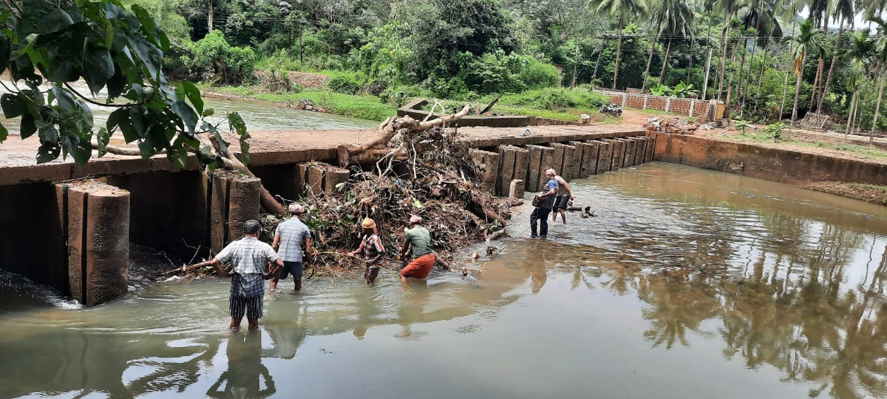 ಬೆಳ್ತಂಗಡಿ: ನಡ ಗ್ರಾಮದ ಬಸ್ರಾಯ ಕಿಂಡಿ ಅಣೆಕಟ್ಟಿನಲ್ಲಿ ನಲ್ಲಿ ಸಿಲುಕಿಕೊಂಡಂತಹ ಮರದ ಕೊಂಬೆ ಹಾಗೂ ಕಸಕಡ್ಡಿಗಳನ್ನು ಸ್ಥಳೀಯರ ಸಹಕಾರದಿಂದ ಶ್ರಮದಾನದ ಮೂಲಕ ತೆರವುಗೊಳಿಸಲಾಯಿತು.ನಡ ಗ್ರಾಮದ ಅಜಯನಗರ ಹಾಗೂ ಅಣ್ಣಪ್ಪ ಕೋಡಿಯ ನಿವಾಸಿಗರಾದ ಜೈಸನ್ ಡಿ’ಸೋಜ, ವಿಕ್ಟರ್ ಡಿ’ಸೋಜಾ, ವಿಜಯ್ ಪೌಲ್, ಶ್ಯಾಮ್ ಭಟ್, ಲಿಂಗಪ್ಪ, ಬಿನೋಯ್ ಹಾಗೂ ಬೆಳ್ತಂಗಡಿ ಸಿ.ಎ. ಬ್ಯಾಂಕ್ ನಿರ್ದೇಶಕ ಶ್ರೀನಾಥ್ ಕೆ.ಎಂ. ಮತ್ತಿತರರು ಶ್ರಮದಾನದಲ್ಲಿ ಭಾಗವಹಿಸಿದ್ದರು. ಡ್ಯಾಮಿಗೆ ಆಗಲಿರುವ ತೊಂದರೆಯನ್ನು ಸರಿಪಡಿಸಲಾಯಿತು.