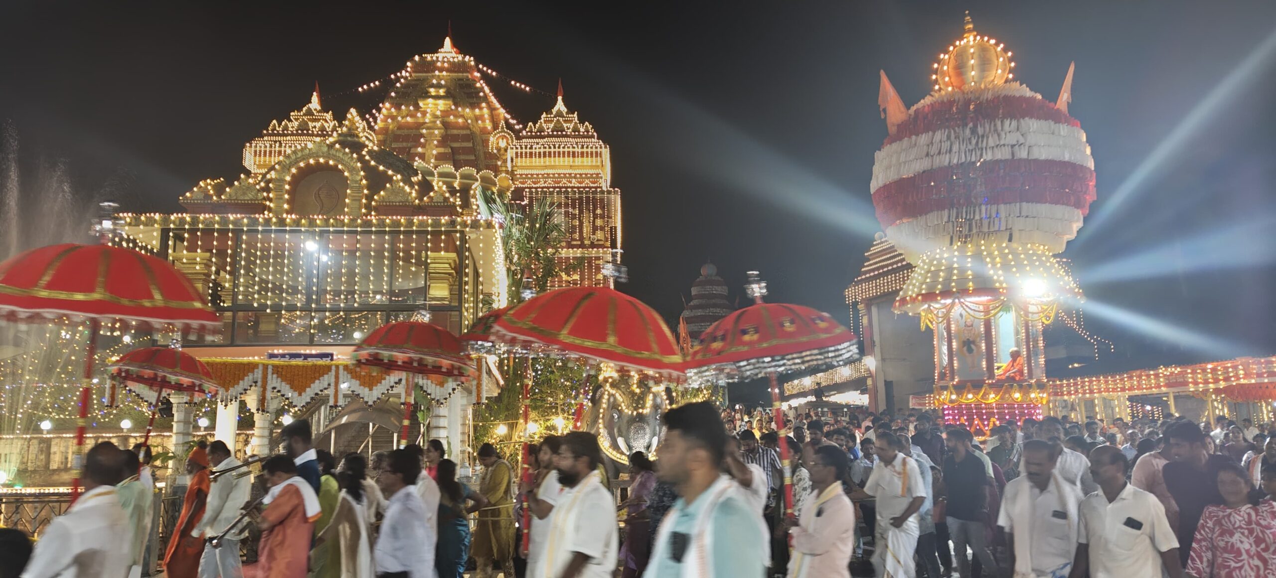 ಬೆಳ್ತಂಗಡಿ: ಧರ್ಮಸ್ಥಳ ಗ್ರಾಮದ ಕನ್ಯಾಡಿ ನಿತ್ಯಾನಂದ ನಗರ ಶ್ರೀ ರಾಮ ಕ್ಷೇತ್ರ ಮಹಾಸಂಸ್ಥಾನಮ್ನಲ್ಲಿ ಜಗದ್ಗುರು ಶ್ರೀ ಅತ್ಮಾನಂದ ಸರಸ್ವತಿ ಸ್ವಾಮೀಜಿಯವರ ಸ್ಮರಣೆಯೊಂದಿಗೆ ಕ್ಷೇತ್ರದ ಪೀಠಾಧೀಶ ಮಹಾಮಂಡಲೇಶ್ವರ 1008 ಸದ್ಗುರು ಶ್ರೀ ಬ್ರಹ್ಮಾನಂದ ಸರಸ್ವತಿ ಸ್ವಾಮೀಜಿಯವರ ನೇತೃತ್ವದಲ್ಲಿ ನಡೆಯುತ್ತಿರುವ 66 ನೇ ವರ್ಷದ ಶ್ರೀ ರಾಮ ನಾಮ ಸಪ್ತಾಹ ಮತ್ತು ಪ್ರತಿಷ್ಠಾ ಜಾತ್ರಾ ಮಹೋತ್ಸವದ ಮಾರ್ಚ್ 26 ರಂದು ಬೆಳಿಗ್ಗೆ ದತ್ತ ಯಾಗ, ಮಧ್ಯಾಹ್ನ ಆಂಜನೇಯ ದೇವರಿಗೆ ಮತ್ತು ದತ್ತಾತ್ರೇಯ ಗುರುಗಳಿಗೆ ವಿಶೇಷ ಮಹಾ ಪೂಜೆ ನಡೆಯಿತು. ರಾತ್ರಿ ದತ್ತಾತ್ರೇಯ ಮತ್ತು ಆಂಜನೇಯ ದೇವರ ಮೂರ್ತಿ ಬಲಿ ಉತ್ಸವ ಮತ್ತು ಹನುಮಾನ್ ರಥೋತ್ಸವ, ಕಟ್ಟೆ ಪೂಜೆ, ಕೆರೆ ದೀಪೋತ್ಸವ ನಡೆಯಿತು.