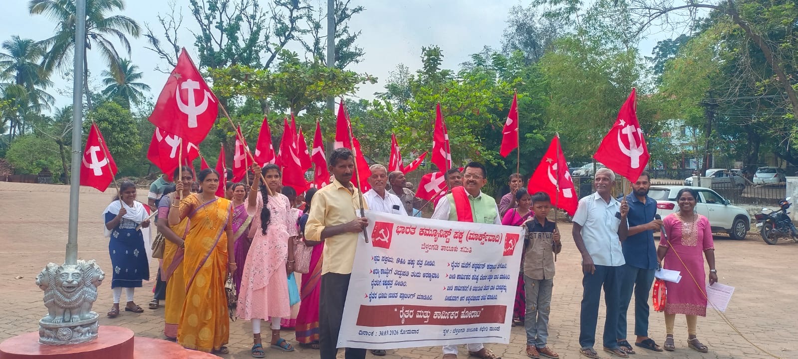 ಅವರು ಮಾರ್ಚ್ 30ರಂದು ಸಿಪಿಐಎಂ ಬೆಳ್ತಂಗಡಿ ತಾಲೂಕು ಸಮಿತಿ ನೇತೃತ್ವದಲ್ಲಿ ತಾಲೂಕು ಕಚೇರಿ ಆವರಣದ ಒಳಗೆ ನಡೆದ ಪ್ರತಿಭಟನೆಯನ್ನುದ್ದೇಶಿಸಿ ಮಾತಾಡುತ್ತಿದ್ದರು. ಅರಣ್ಯವಾಸಿ ರೈತರಿಗೆ ಹಕ್ಕುಪತ್ರ ನೀಡಲು ಅಡ್ಡಿಯಾಗಿರುವ 3 ತಲೆ ಮಾರಿನ ದಾಖಲೆ ನೀಡಬೇಕೆಂಬ ನಿರ್ಬಂಧವನ್ನು ತೆಗೆದು ಅರಣ್ಯ ಕಾಯ್ದೆಗೆ ಕೇಂದ್ರ ಸರಕಾರ ತಿದ್ದುಪಡಿ ತಂದು ಹಕ್ಕುಪತ್ರ ನೀಡಬೇಕೇ ವಿನಃ ಇಲ್ಲಿ ಕಾಂಗ್ರೇಸ್ ಬಿಜೆಪಿಗಳು ತಮ್ಮ ರಾಜಕೀಯ ಬೇಳೆ ಬೆಳೆಸಲು ರೈತರನ್ನು ಬಲಿಪಶು ಮಾಡಬಾರದು ಎಂದರು. ಆದಿವಾಸಿ ಸಮುದಾಯದವರಿಗೂ ಹಕ್ಕುಪತ್ರ ನೀಡದೆ ಅರಣ್ಯ ಹಕ್ಕು ಕಾಯ್ದೆಯನ್ನೇ ಉಲ್ಲಂಘನೆ ಮಾಡುವ ಸರಕಾರದ ನಡೆಗಳ ವಿರುದ್ದ ನಮ್ಮ ಹೋರಾಟ ಮುಂದುವರಿಯಲಿದೆ ಎಂದರು. 94 ಸಿ, 94ಸಿಸಿ ಅರ್ಜಿಗಳನ್ನು ಅರ್ಜಿದಾರರ ಗಮನಕ್ಕೆ ತಾರದೆ ತಿರಸ್ಕರಿಸಿರುವುದು ಖಂಡನೀಯ ಎಂದ ಅವರು ಆ ಅರ್ಜಿಯ ಮರುಪರಿಶೀಲನೆ ನಡೆಸಿ ವಾಸ ಇರುವ ಬಡವನಿಗೆ ಹಕ್ಕುಪತ್ರ ನೀಡಬೇಕು, ಅಕ್ರಮ ಸಕ್ರಮ ಅರ್ಜಿಗಳಿಗೂ ಮಂಜೂರಾತಿ ನೀಡಬೇಕು ಎಂದರು. ಬೀಡಿ ಕಾರ್ಮಿಕರ ಬಾಕಿ ವೇತನ ಪಾವತಿಯಲ್ಲಾದ ಅವ್ಯವಹಾರ, ಖಾಲಿ ಫಾರಂಗೆ ಸಹಿ ಪಡೆದು ವಂಚನೆ ನಡೆಸಿರುವುದು ಇತ್ಯಾದಿಗಳ ಬಗ್ಗೆ ತನಿಖೆ ನಡೆಸಿ ಕಾರ್ಮಿಕರಿಗೆ ಬಾಕಿ ವೇತನ ಪೂರ್ತಿ ಕೊಡಿಸಿ ನ್ಯಾಯ ಕೊಡಿಸಬೇಕು; ಮತ್ತು ಸರಕಾರ ಮಾಲಕರ ಪರ ನಿಂತು ವೇತನವನ್ನು ಹಿಮ್ಮುಖವಾಗಿ ನಿರ್ಧರಿಸಿ ಆದೇಶ ಮಾಡಿದ ವೇತನ ಪ್ರತಿ 1,000 ಬೀಡಿಗೆ ರೂಪಾಯಿ 301.92ನ್ನು ಕಳೆದ ಒಂದು ವರ್ಷದಿಂದ ಮಾಲಕರಿಂದ ಕೊಡಿಸಲಾಗದಿರುವುದು ನಾಚಿಕೆ ವಿಚಾರ ಎಂದರು. ಮೈಕ್ರೋಪೈನಾನ್ಸ್ ಸಂಸ್ಥೆಯವರು ಮನೆಮನೆಗೆ ಬಂದು ನಡೆಸುವ ದೌರ್ಜನ್ಯ ತಡೆಯಬೇಕು ಮತ್ತು 3% ಬಡ್ಡಿಯಲ್ಲಿ ಬ್ಯಾಂಕುಗಳೇ ಸಾಲ ನೀಡುವಂತೆ ಮಾಡಬೇಕು ಎಂದರು.