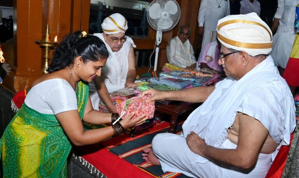 ಬೆಳ್ತಂಗಡಿ: ನವರಾತ್ರಿ ಸಂದರ್ಭದ ಶ್ರೀ ಕ್ಷೇತ್ರ ಧರ್ಮಸ್ಥಳದಲ್ಲಿ ಅಕ್ಟೋಬರ್ 11ರ ರಾತ್ರಿ ಕ್ಷೇತ್ರದ ಧರ್ಮಾಧಿಕಾರಿ ಡಾ. ಡಿ. ವೀರೇಂದ್ರ ಹೆಗ್ಗಡೆಯವರು ಮುತ್ತೈದೆಯರಿಗೆ ದೇವಸ್ಥಾನದಲ್ಲಿ 3,026 ಸೀರೆಗಳನ್ನು ಪ್ರಸಾದ ರೂಪವಾಗಿ ವಿತರಿಸಿದರು.