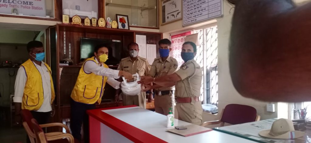 ಕೊರೋನಾ ಸೋಂಕಿನ ವಿರುದ್ಧ ಮುಂಜಾಗ್ರತೆ ಸೇವಾಕಾರ್ಯದಲ್ಲೂ ಮಾಸ್ಕ್ ಧರಿಸಿ ವೈಯಕ್ತಿಕ ಅಂತರ ಕಾಯ್ದ ಲಯನ್ಸ್ ಅಧ್ಯಕ್ಷ ಹಾಗೂ ಕಾರ್ಯದರ್ಶಿ