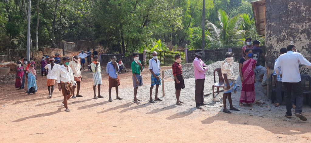 ವೈಯಕ್ತಿಕ ಅಂತರ ಹಾಗೂ ಮಾಸ್ಕ್ ಮರೆತು ಕಿಟ್ ವಿತರಣೆ