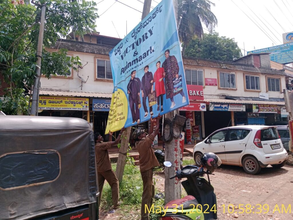 ವಿದ್ಯುತ್ ಕಂಬಕ್ಕೆ ಬಿಗಿಯಲಾದ ಅನಧಿಕೃತ ಫ್ಲೆಕ್ಸ್