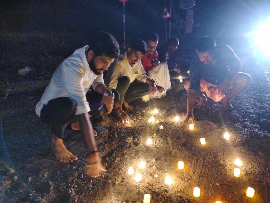 ರಸ್ತೆ ರಿಪೇರಿಗೆ ಕೊಡೆ ಹಿಡಿಯಬೇಕಾಗಿಲ್ಲ – ರಸ್ತೆ ಗುಂಡಿಯಲ್ಲಿ ದೀಪ ಬೆಳಗಿ ವಿನೂತನ ಪ್ರತಿಭಟನೆ
