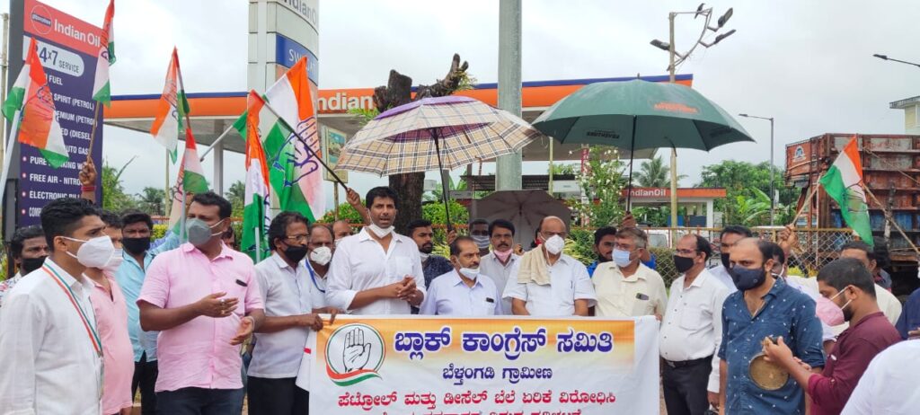 ಪೆಟ್ರೋಲ್ ಬೆಲೆ ಏರಿಕೆ ಖಂಡಿಸಿ ಕಾಂಗ್ರೇಸ್ ಪ್ರತಿಭಟನೆ